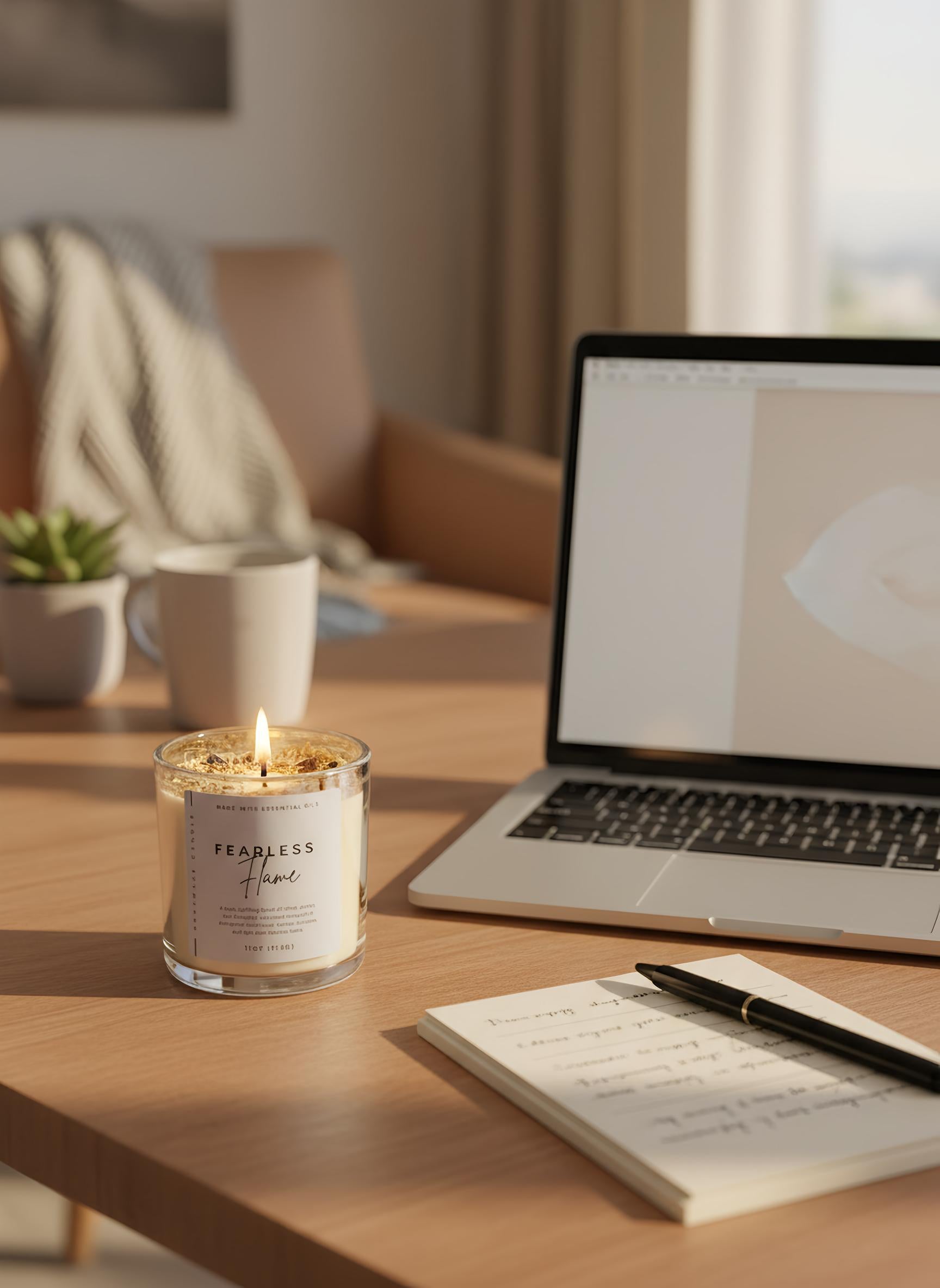 Light during goal setting, work sessions, morning rituals, creative projects, or anytime you want to channel courage, confidence, and focused energy.